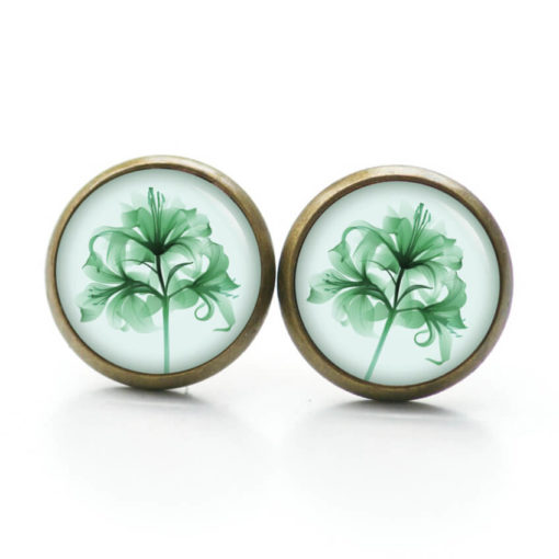 Druckknopf Ohrstecker Ohrhänger Clipse Lilie Lilien in grün