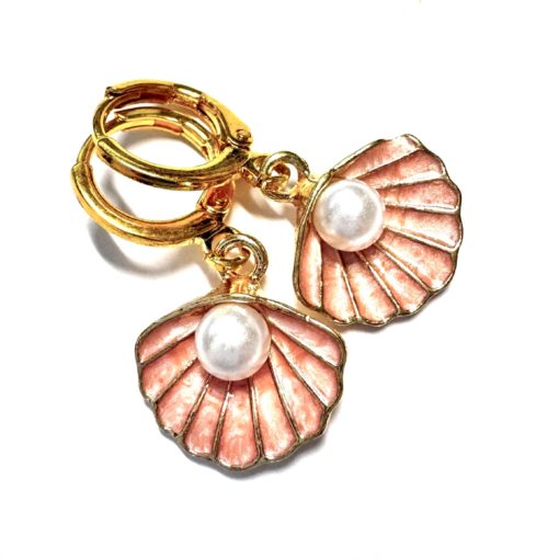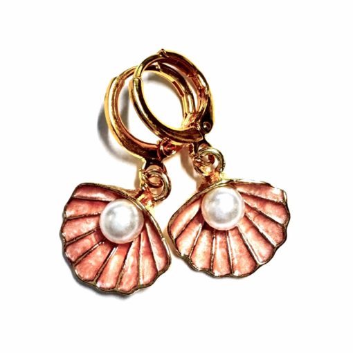 Verspielte kleine rosa Muschel Ohrringe mit einer kleinen Perle.