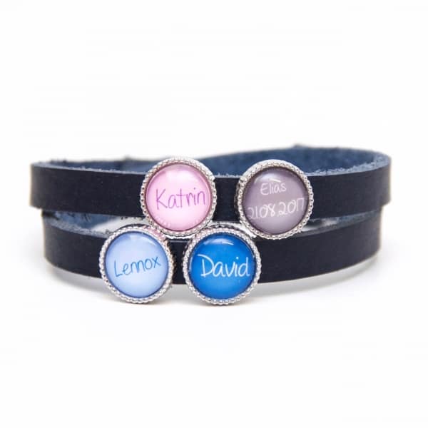 Dunkelblaues Lederarmband mit 4 Wunsch Namen – Farbwahl