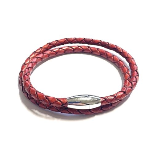 Doppelt gewickeltes Lederarmband in rot mit Edelstahl Magnetverschluss