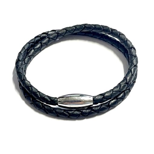 Doppelt gewickeltes Lederarmband in schwarz mit Edelstahl Magnetverschluss