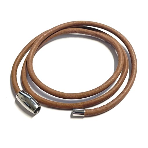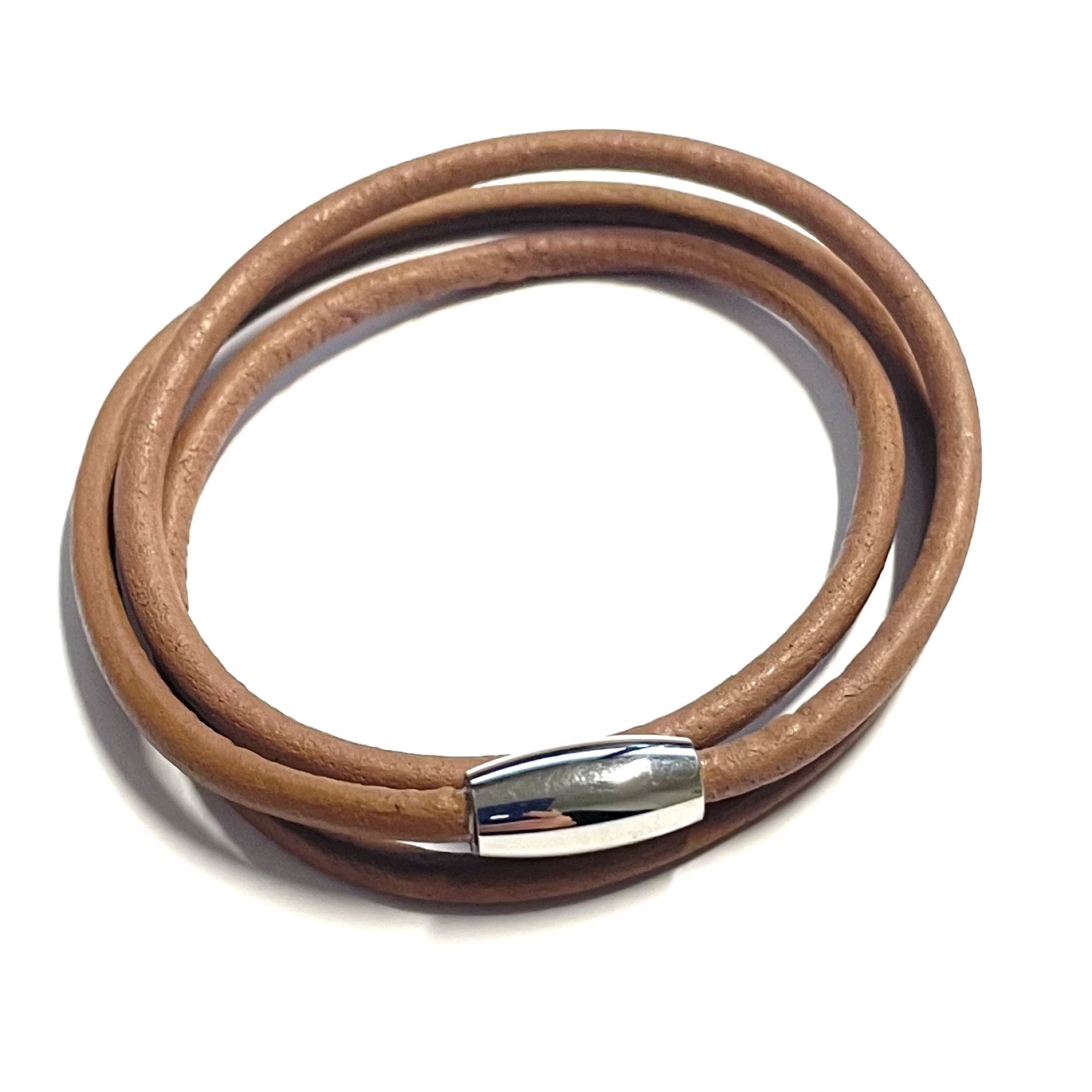 Dreifach gewickeltes Lederarmband in hellbraun mit Edelstahl Magnetverschluss