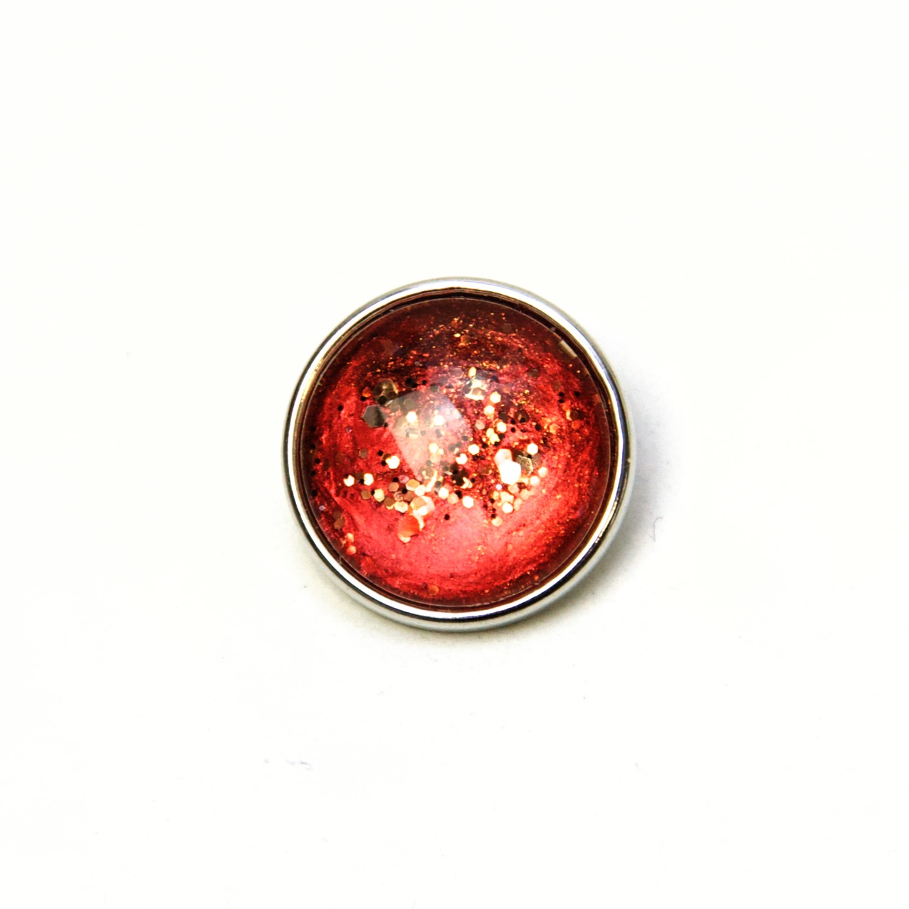 Ein handbemalter Druckknopf in wunderschönen braun und Kupfer Tönen und als Highlight etwas goldenen Flitter.