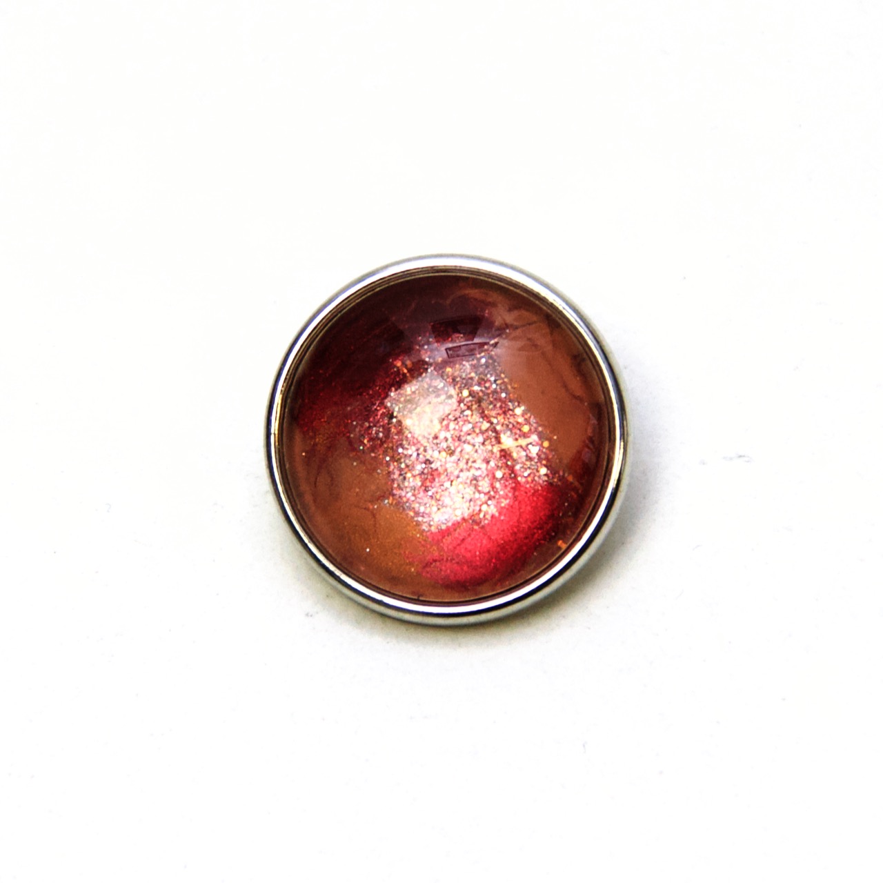 Ein handbemalter Druckknopf in wunderschönen hellem bordeaux und beige mit ein wenig Glitzer.