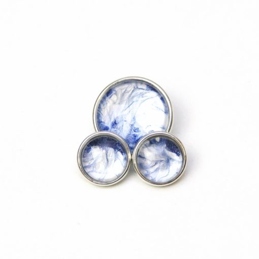 Ein handbemalter Druckknopf der an die Eiszeit Erinnert in Dunkelblau, blau und silber.