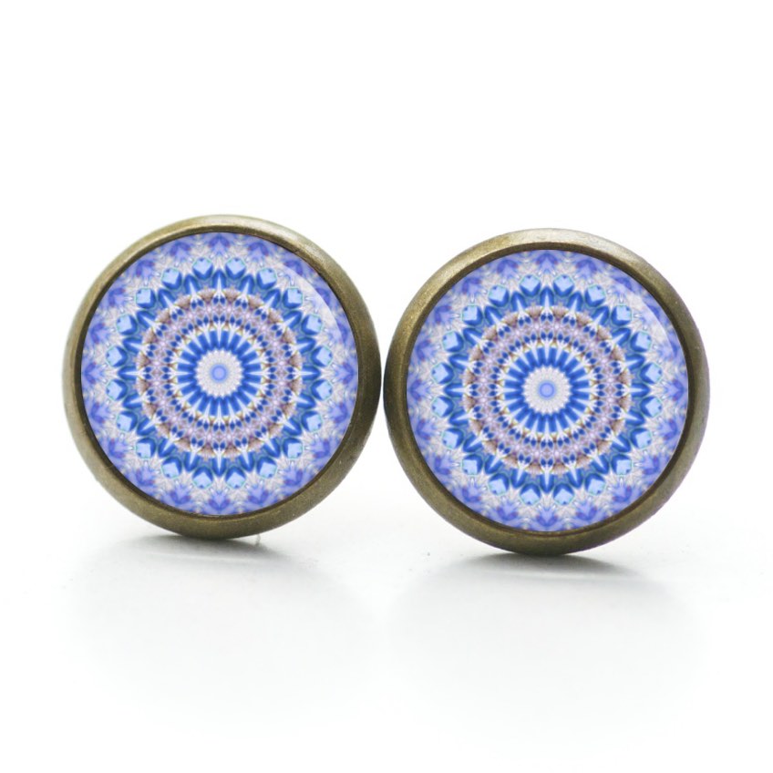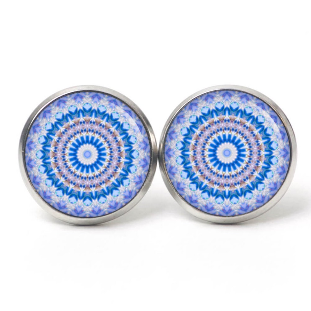 Druckknopf Ohrstecker Ohrhänger Clipse Mandala Mosaik blau jeansblau