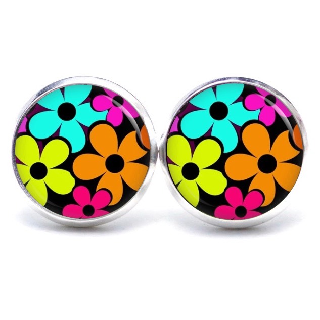 Druckknopf Ohrstecker Ohrhänger Clipse Flower Power 60er Jahre