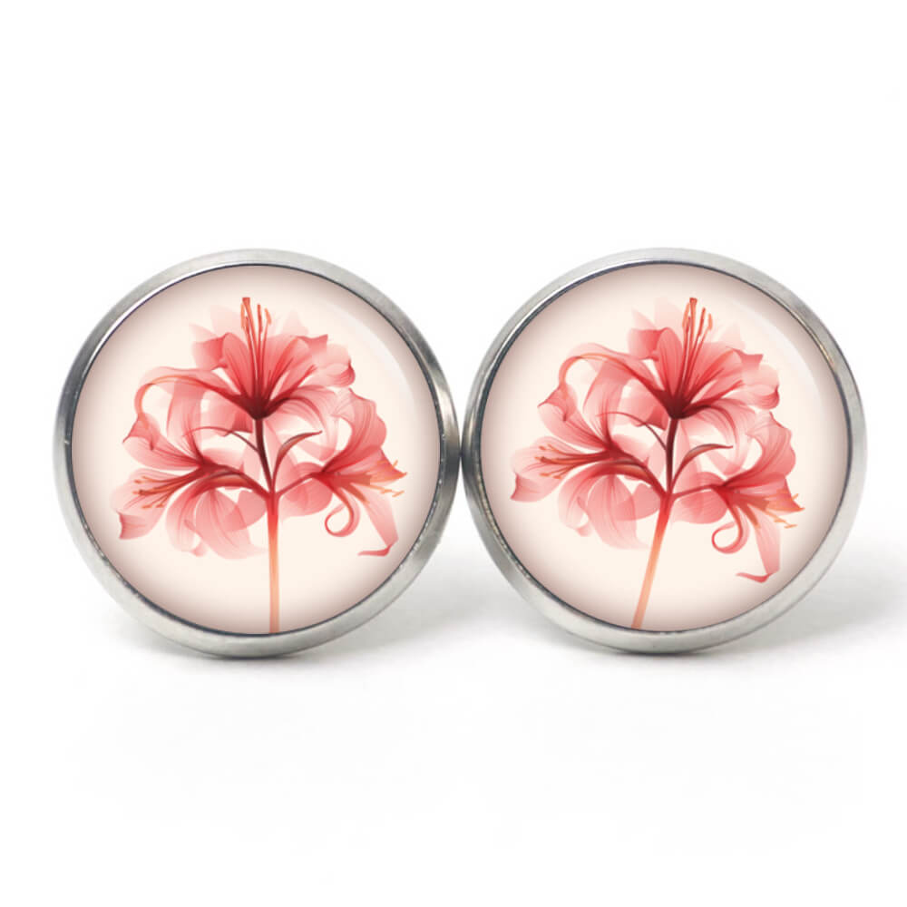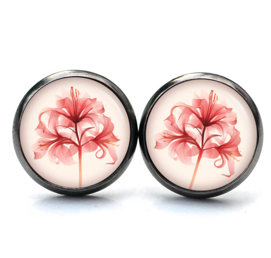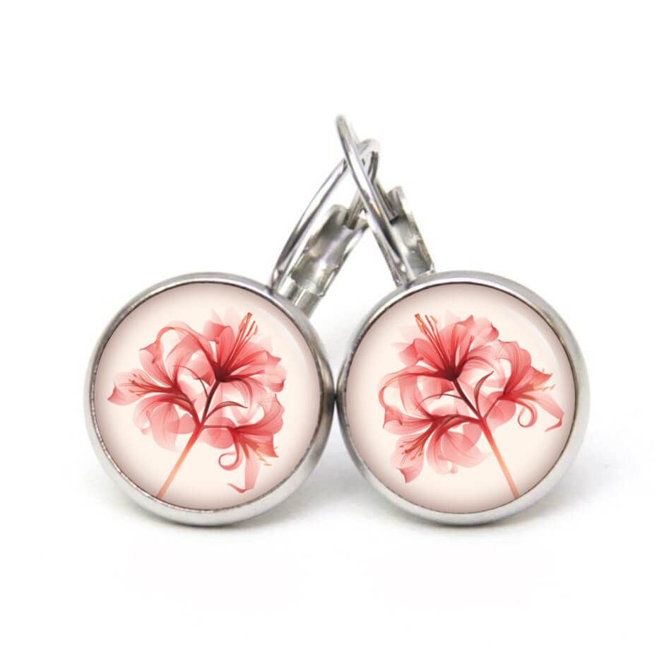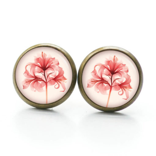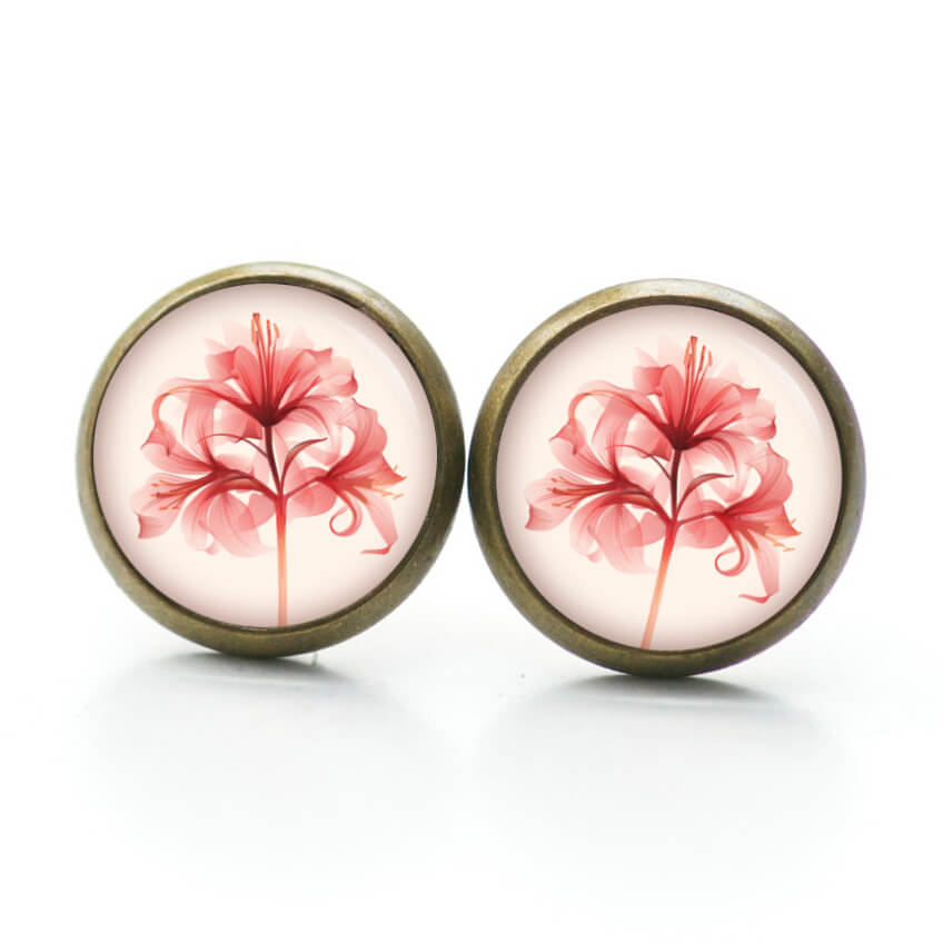 Druckknopf Ohrstecker Ohrhänger Clipse Lilie Lilien in rot beige