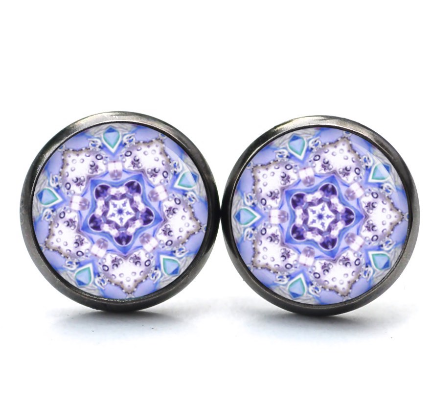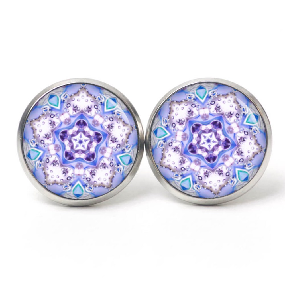 Druckknopf Ohrstecker Ohrhänger Clipse Mandala Mosaik blau lila