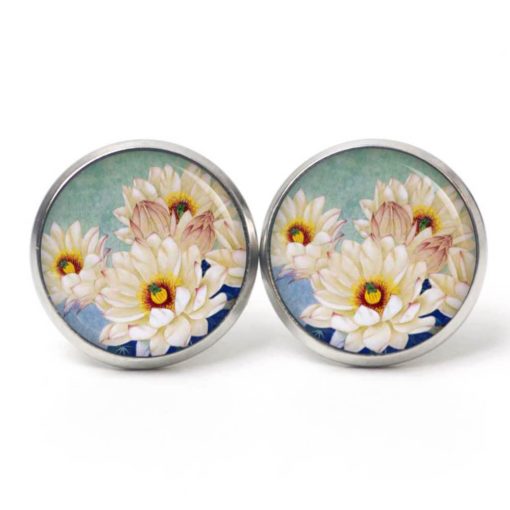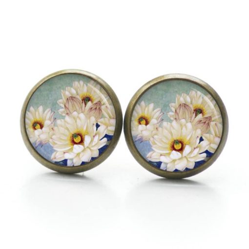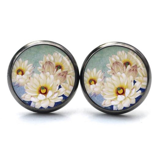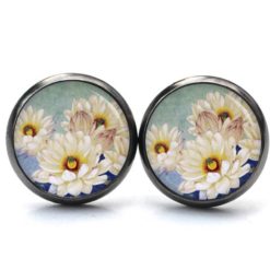 Druckknopf Ohrstecker Ohrhänger Clipse mit weißen Rosen