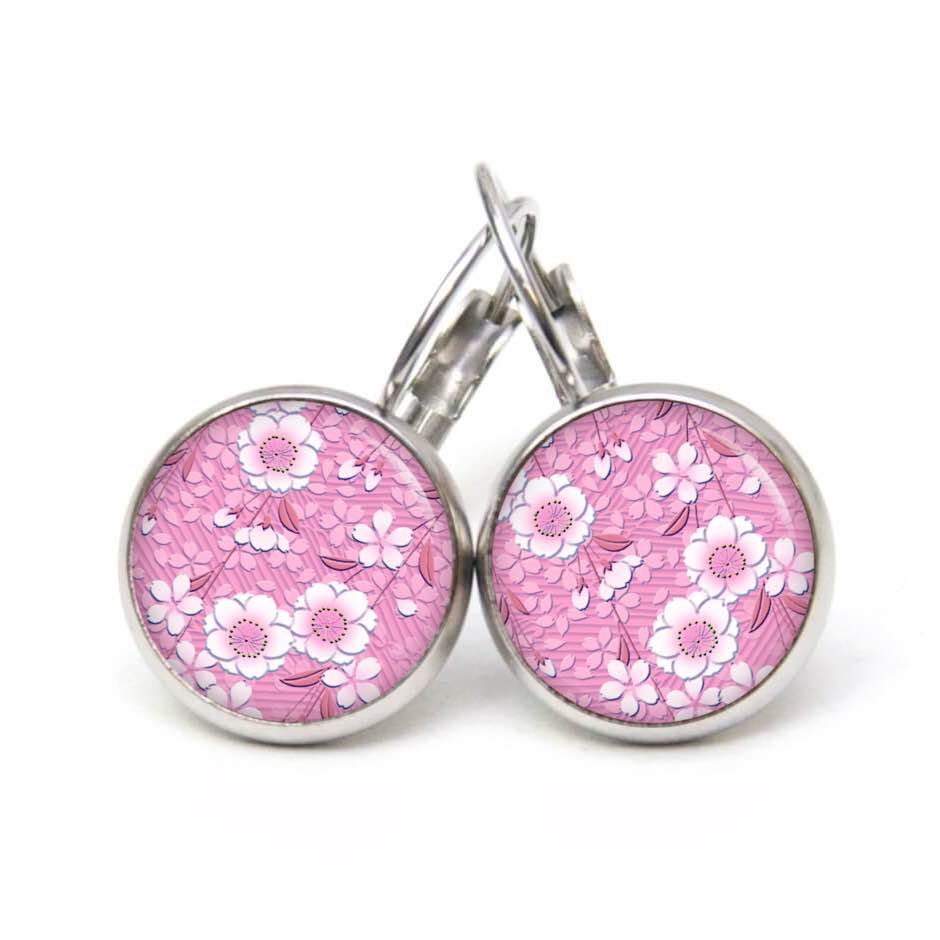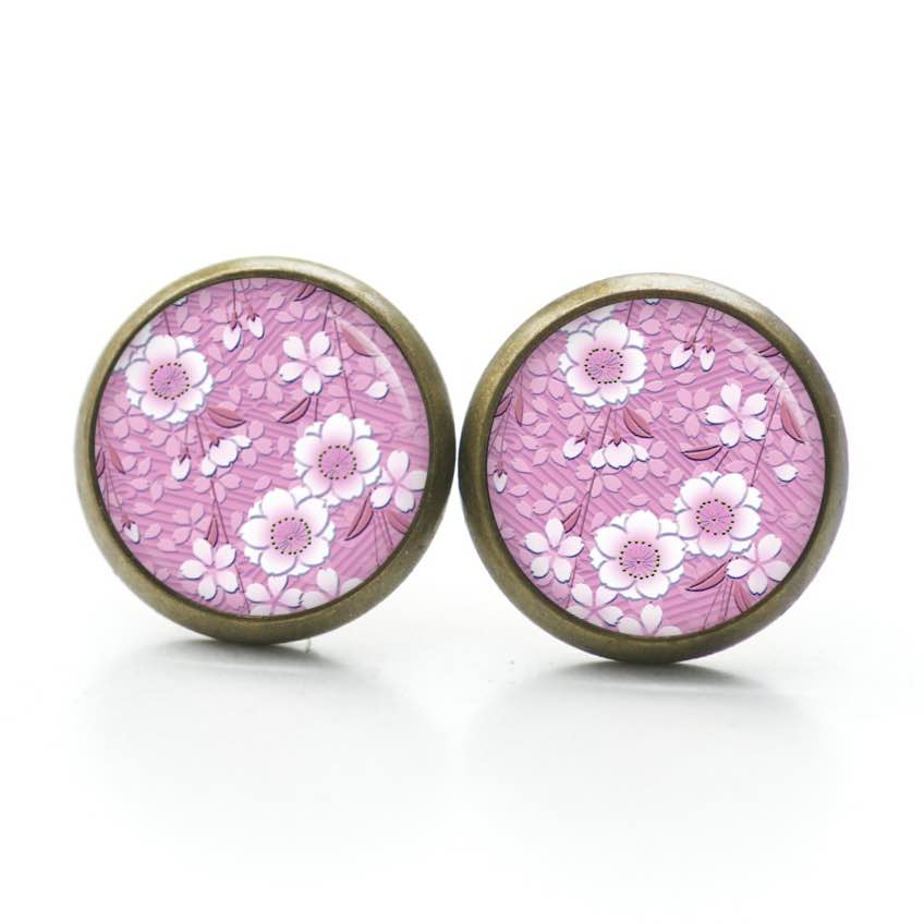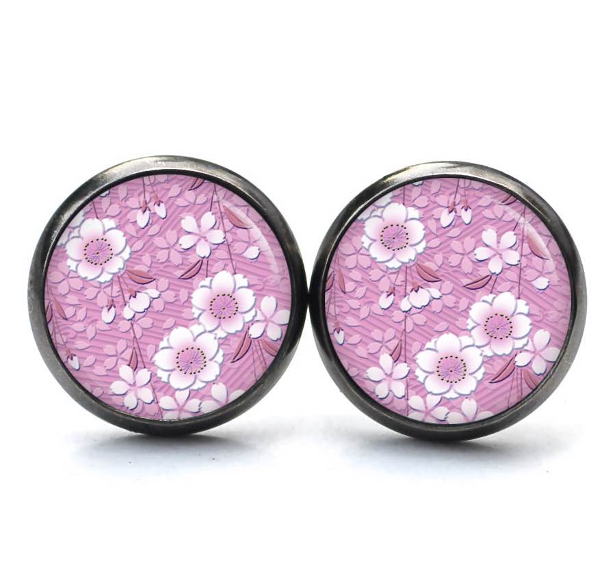 Druckknopf Ohrstecker Ohrhänger Clipse rosa weiße Blumen