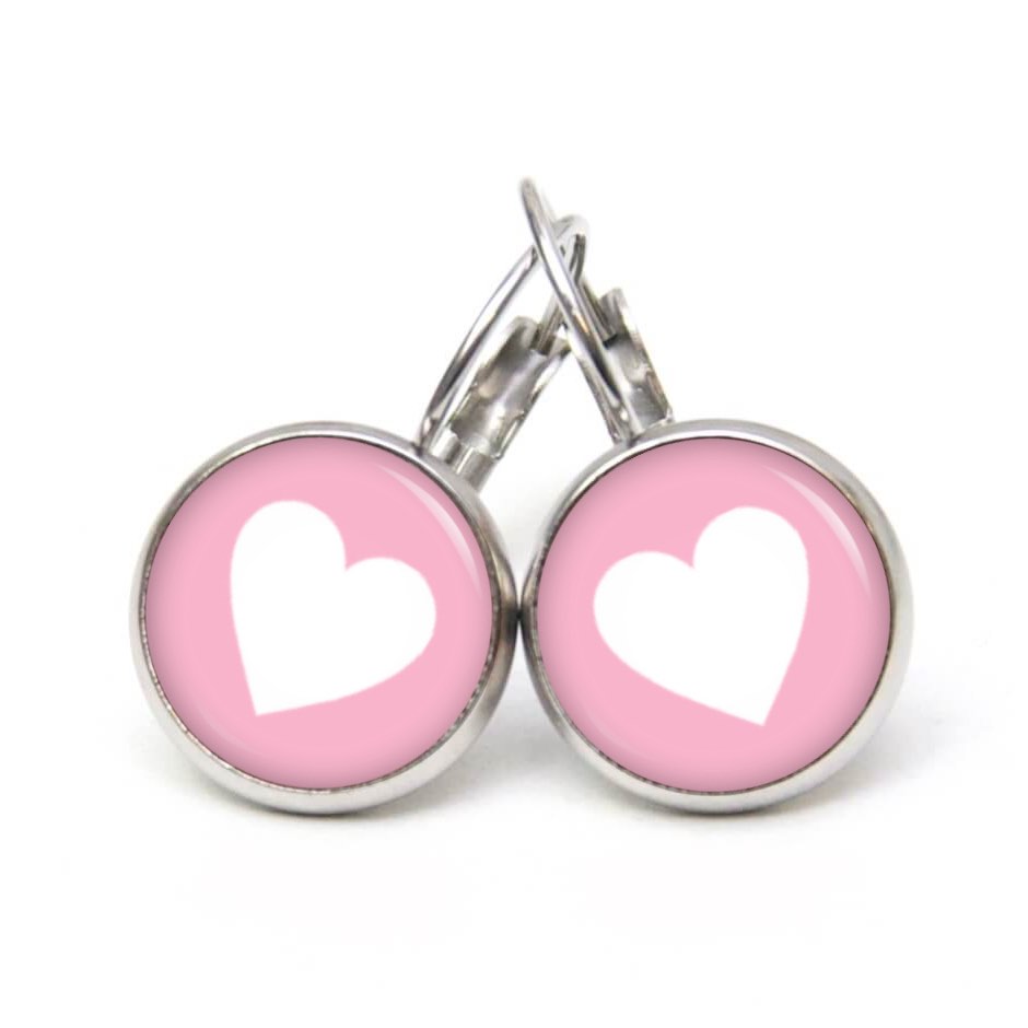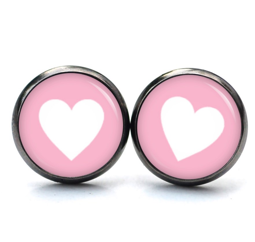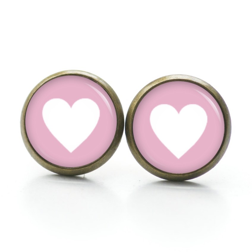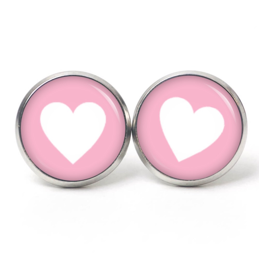 Druckknopf Ohrstecker Ohrhänger Clipse rosa weißes Herz