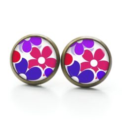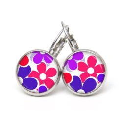 Druckknopf Ohrstecker Ohrhänger Clipse Flower Power rot blau violett 60er Jahre