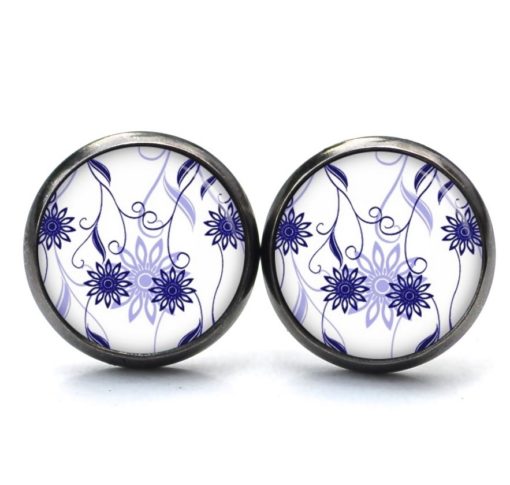 Druckknopf Ohrstecker Ohrhänger Clipse zarte dunkelblaue Blumen