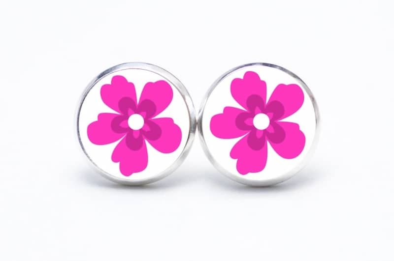 Druckknopf Ohrstecker Ohrhänger große pinke rosa Blume