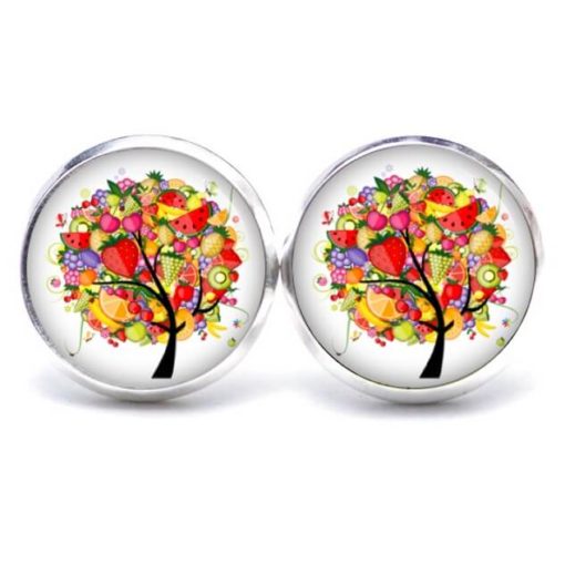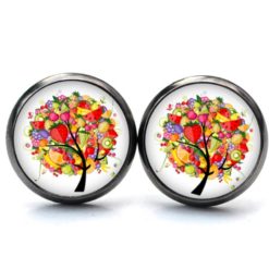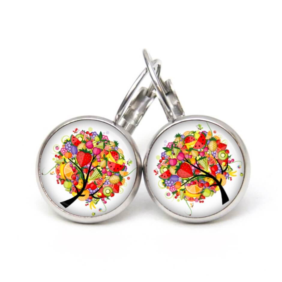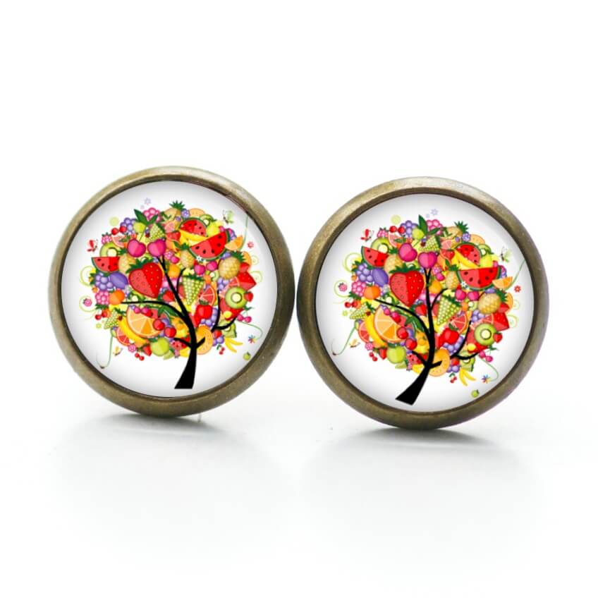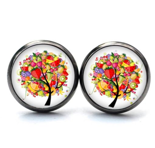 Druckknopf Ohrstecker Ohrhänger großer Baum aus Obst Kiwi Erdbeere