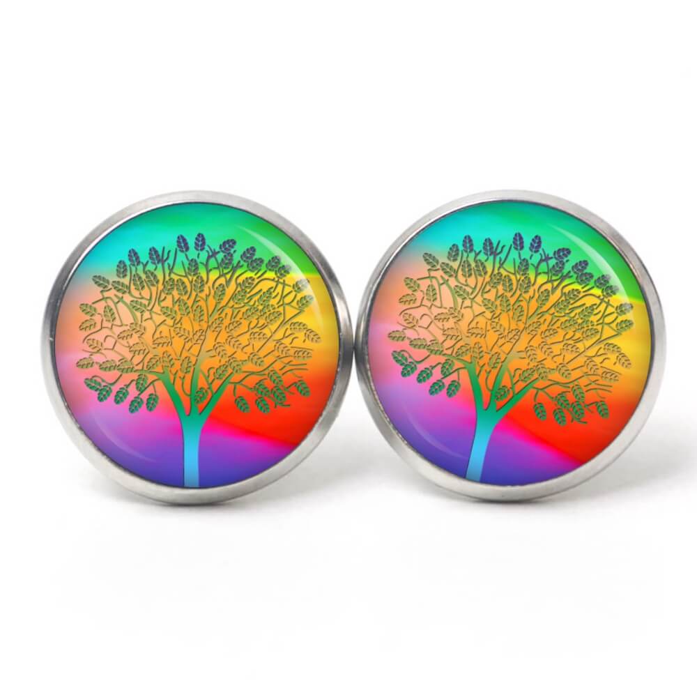 Druckknopf Ohrstecker Ohrhänger großer bunter Baum