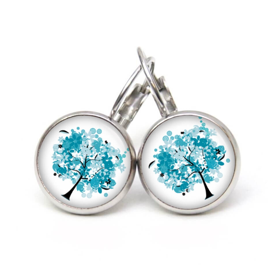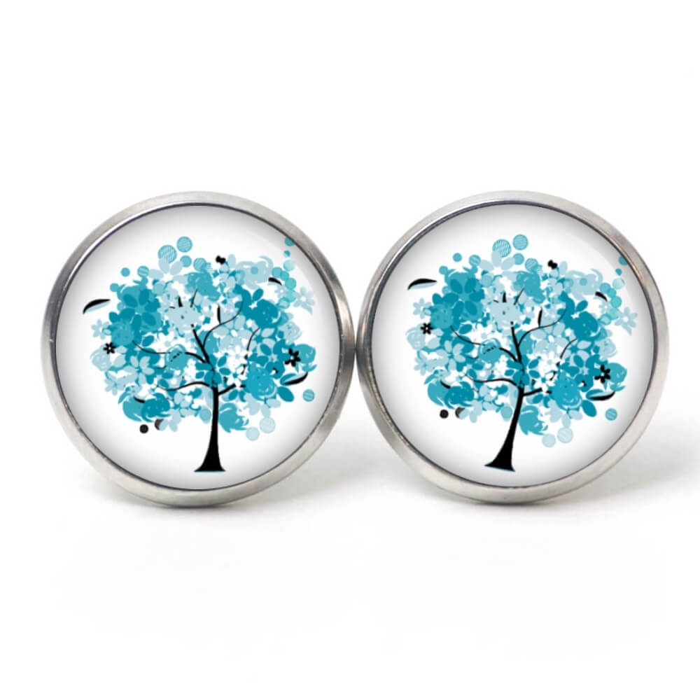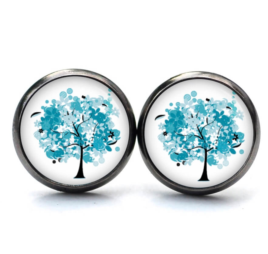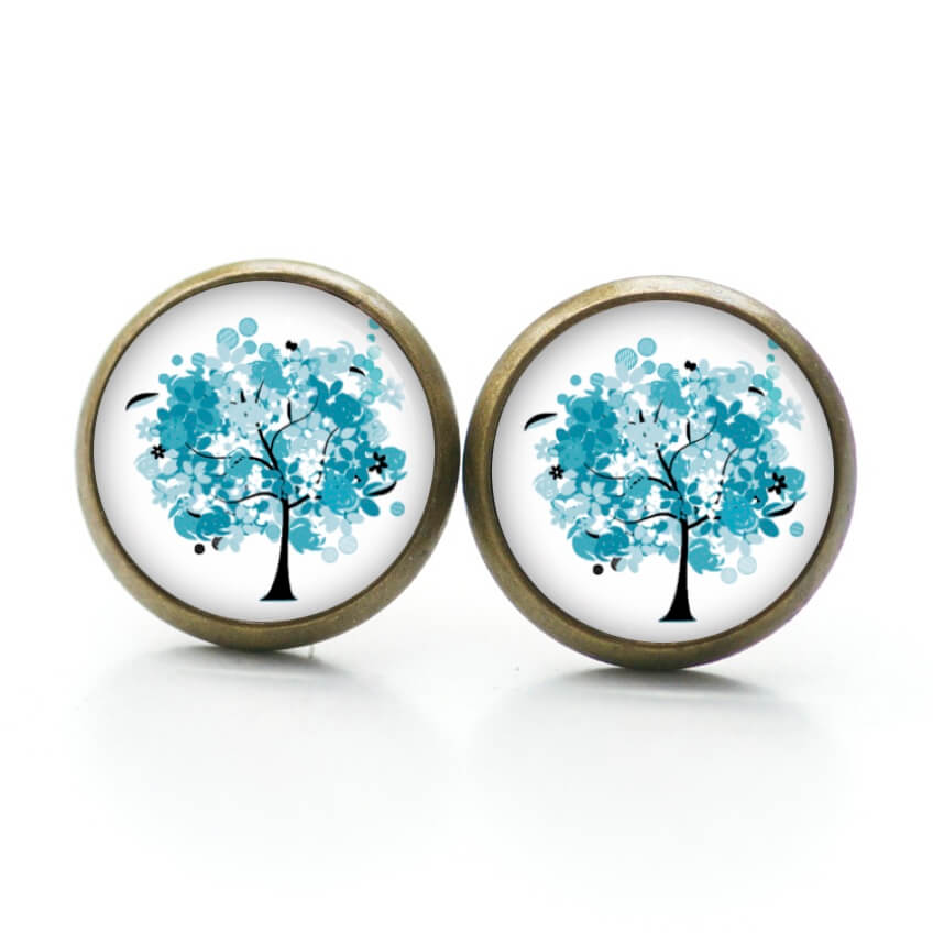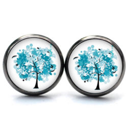 Druckknopf Ohrstecker Ohrhänger großer türkiser Baum