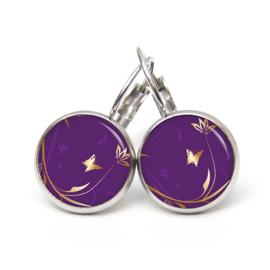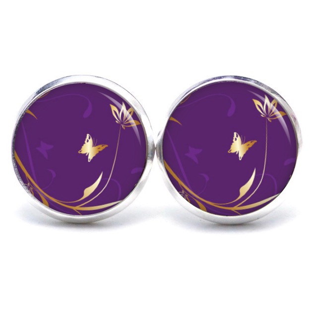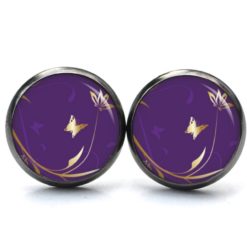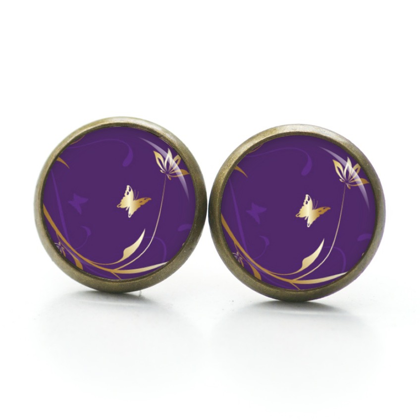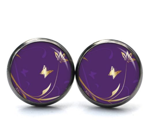 Druckknopf Ohrstecker Ohrhänger goldener Schmetterling auf violett