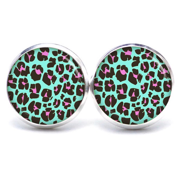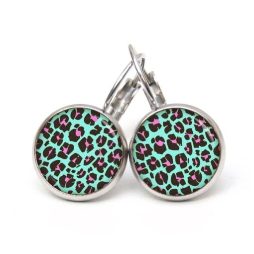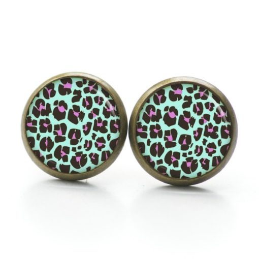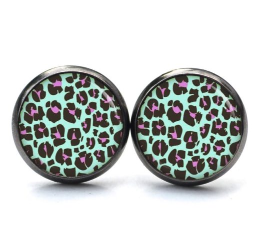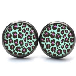 Druckknopf Ohrstecker Ohrhänger Clipse mit Leoparden Muster Türkis Pink