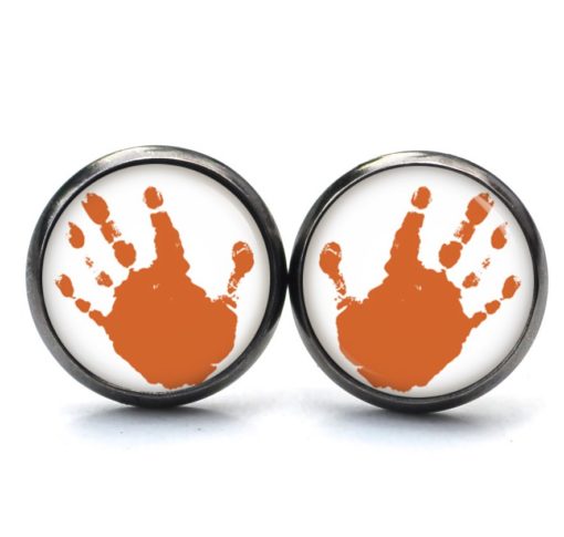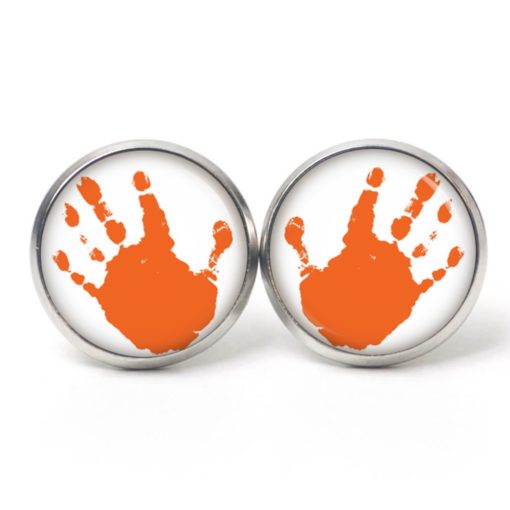 Druckknopf Ohrstecker Ohrhänger Clipse orangene Hand Handabdruck