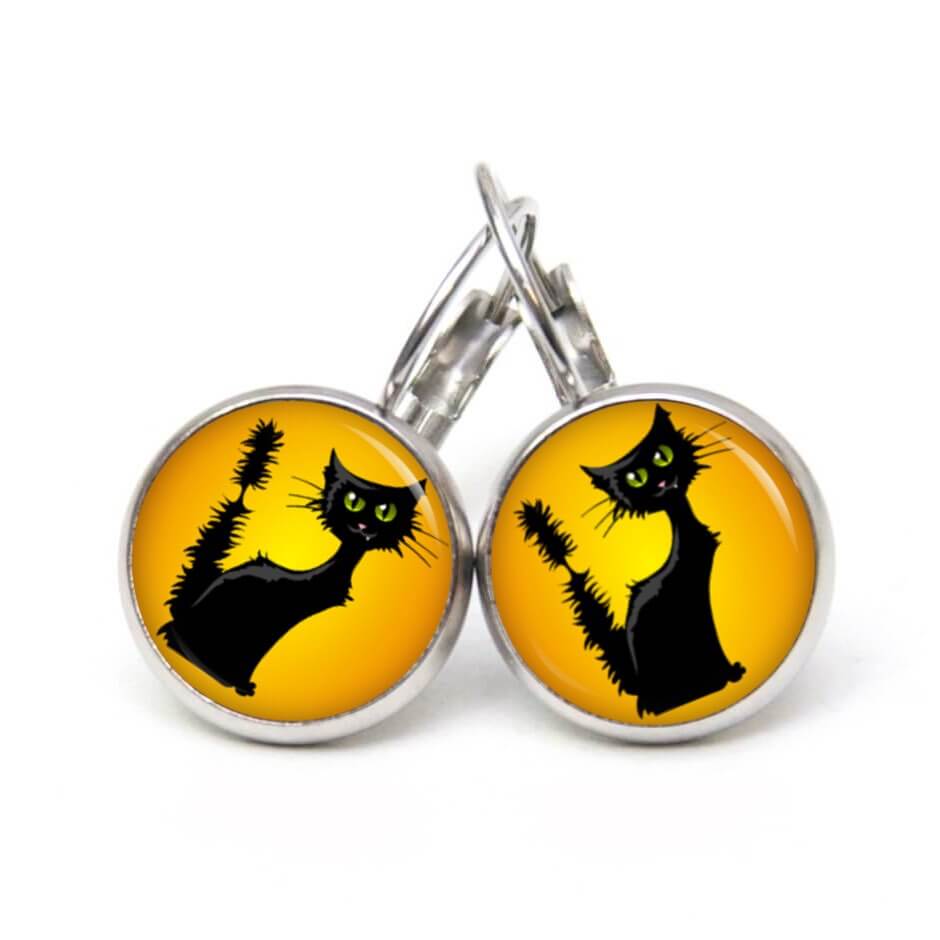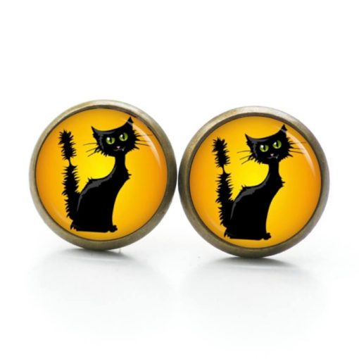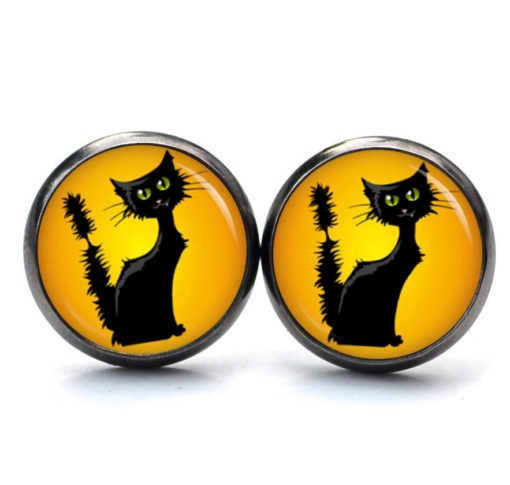 Druckknopf Ohrstecker Ohrhänger Clipse Schwarze Halloween Katze
