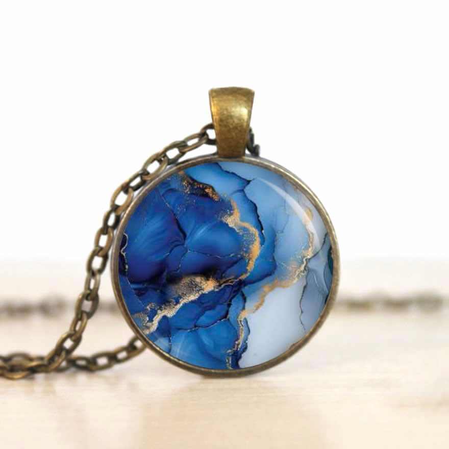 Dunkelblau Gold Marmor Schmuck Set