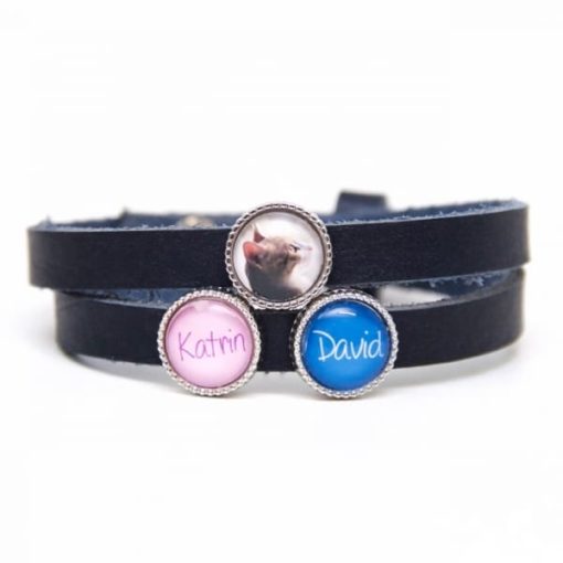 Wunderschönes zweifach gewickeltes Lederarmband mit 2 Schiebeperlen, deinem Wunsch-Text und ihrer Foto Schiebeperle.