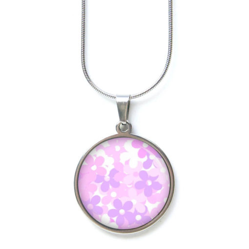 Edelstahl Kette Floral mit rosa weiß lila Blumen Meer