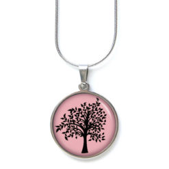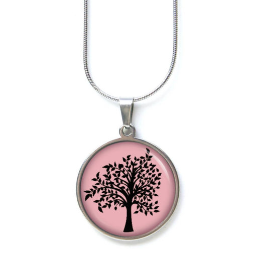 Edelstahl Kette Baum Lebensbaum in rosa und schwarz
