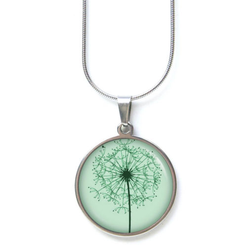 Edelstahl Kette große filigrane grüne Pusteblumen Löwenzahn
