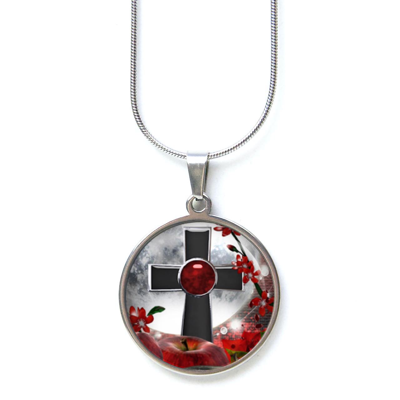 Edelstahl Kette Halloween schwarzes Kreuz Apfel schwarz rot