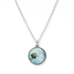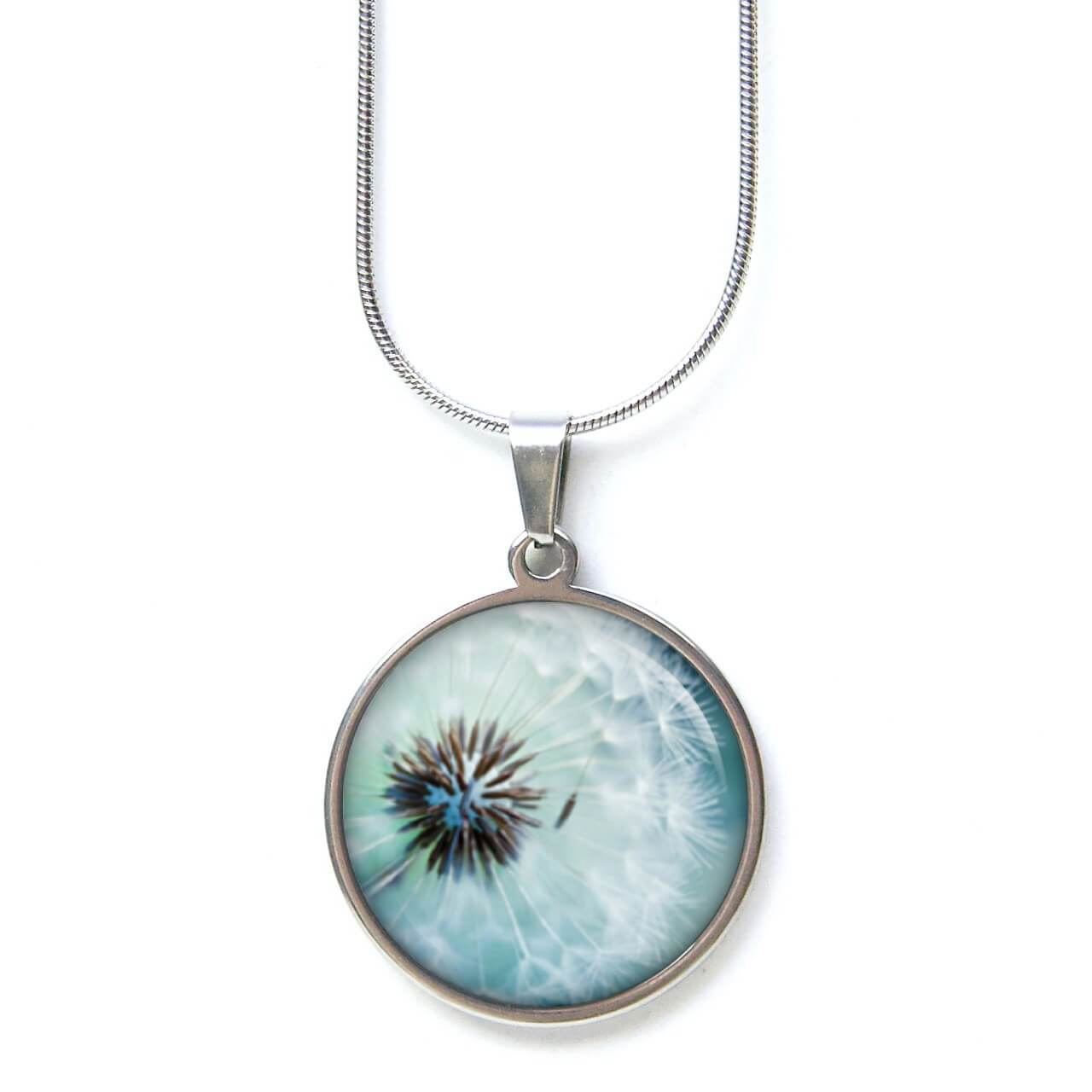 Edelstahl Kette mit großer Pusteblume in türkis
