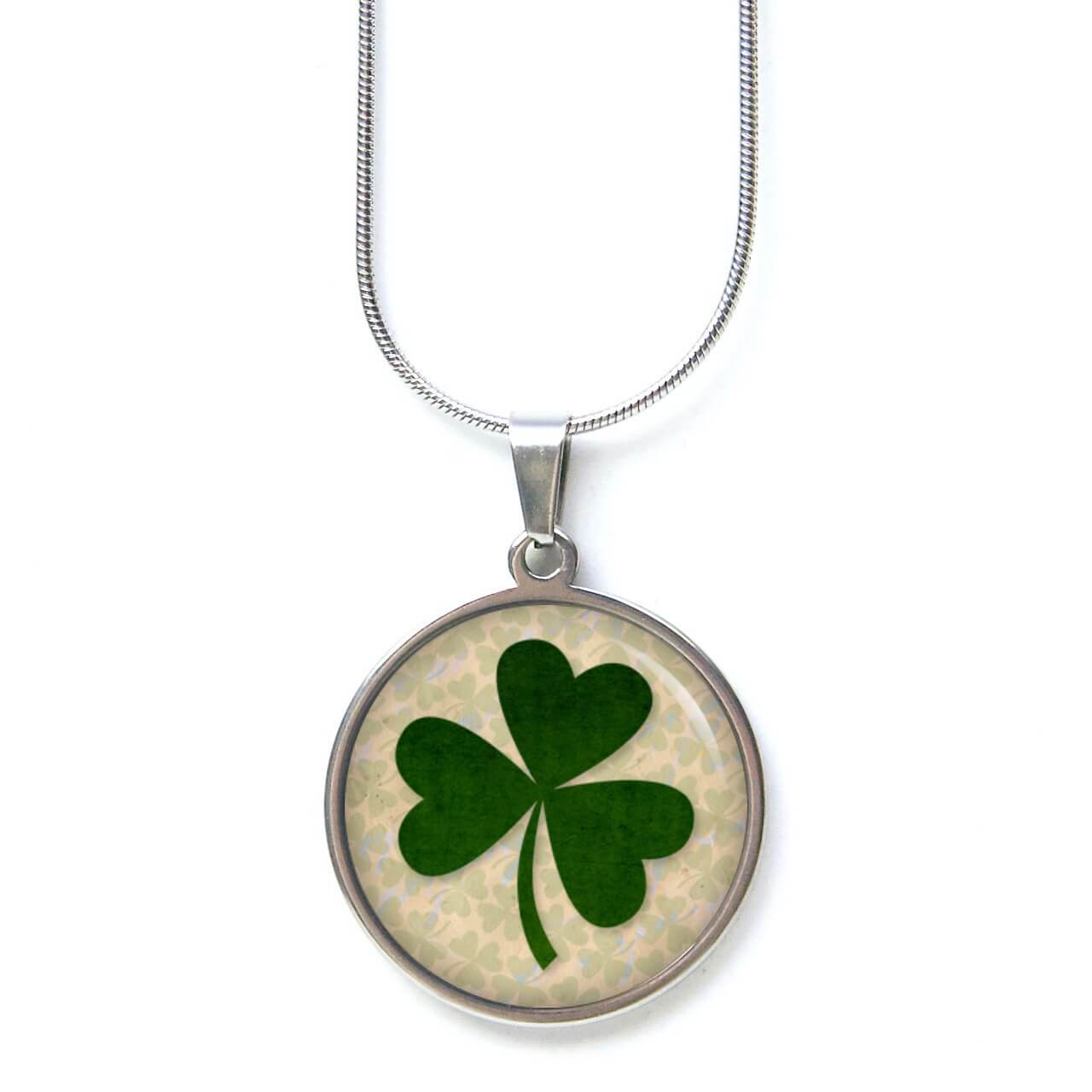 Edelstahl Kette mit Kleeblatt in grün und beige – Glücksbringer