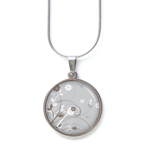 Edelstahl Kette Floral mit zartem Blumenmuster in weiß und grau