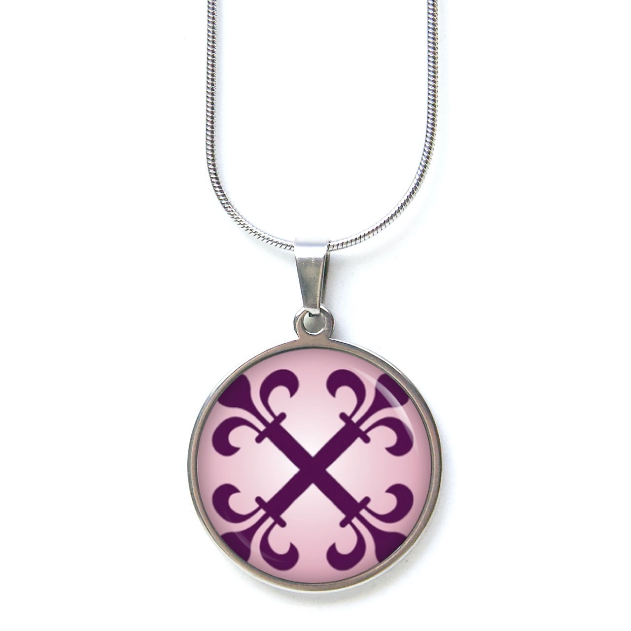 Edelstahl Kette in rosa mit großem violettem Kreuz