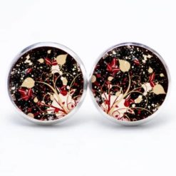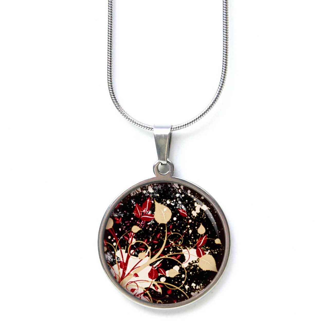 Edelstahl Kette mit tollem Blumenmotiv in rot gold und schwarz