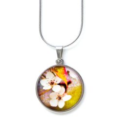 Edelstahl Kette weiße Orchideen auf Gelb – verschiedene Längen