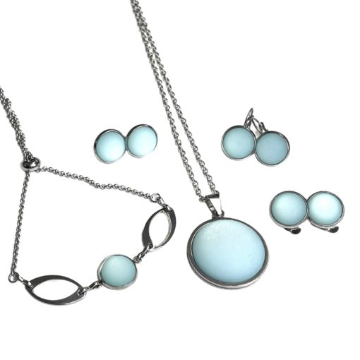 Edelstahl Polaris Schmuck Set in Hellblau – Kette, Ohrringe und Armband
