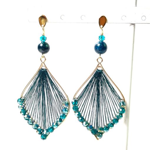 Es handelt sich hier um wunderschöne elegante Ohrhänger. Die Anhänger sind mit Fäden gehäkelt und kleinen Glaskristallperlen verziert.