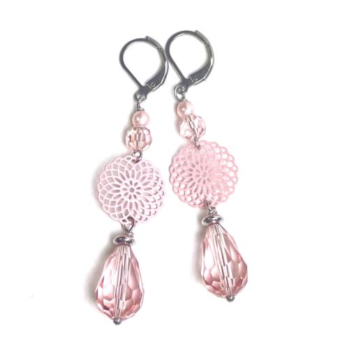 Wunderschöne Vintage Ohrringe in Edelstahl im Boho Stil mit verschiedenen rosa Perlen.