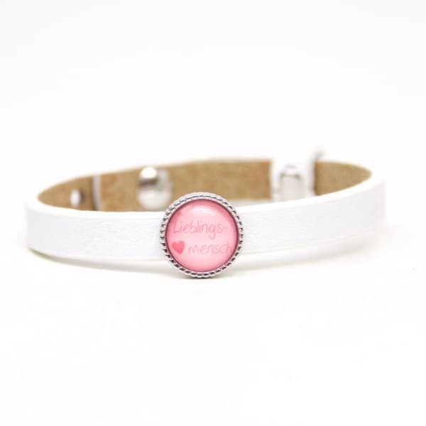 Lederarmband in weiß mit 1 Wunsch Namen – Farbwahl