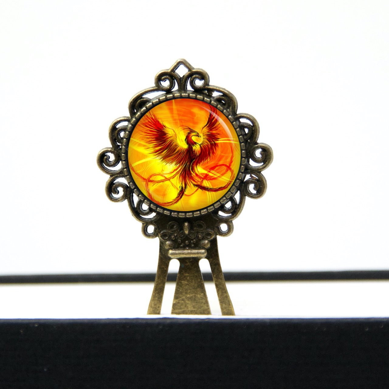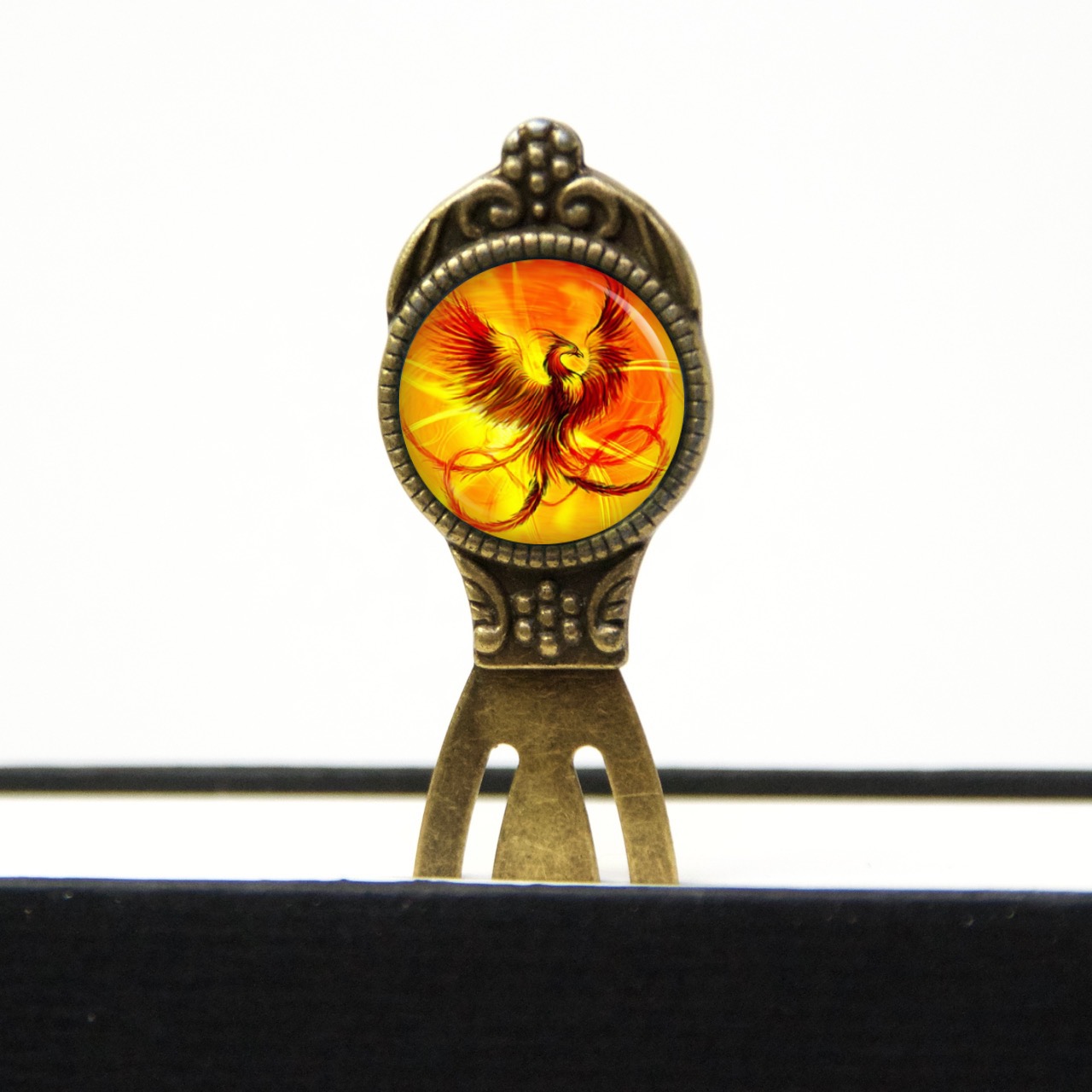 Lesezeichen Klammer großer Phönix in gelb, orange rot