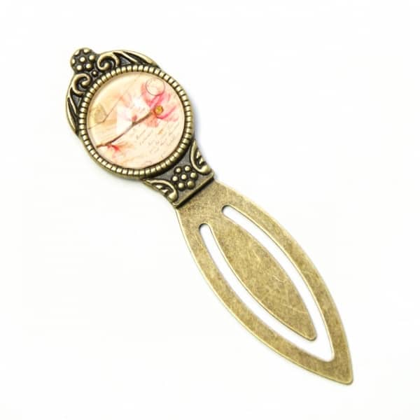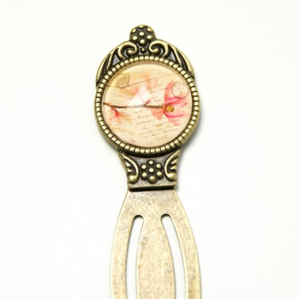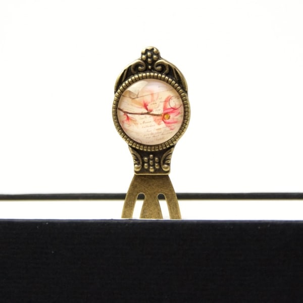 Tolle bronzene Lesezeichen Klammer mit einem romantischen Vintage Kirschblüten Postkarten Motiv.