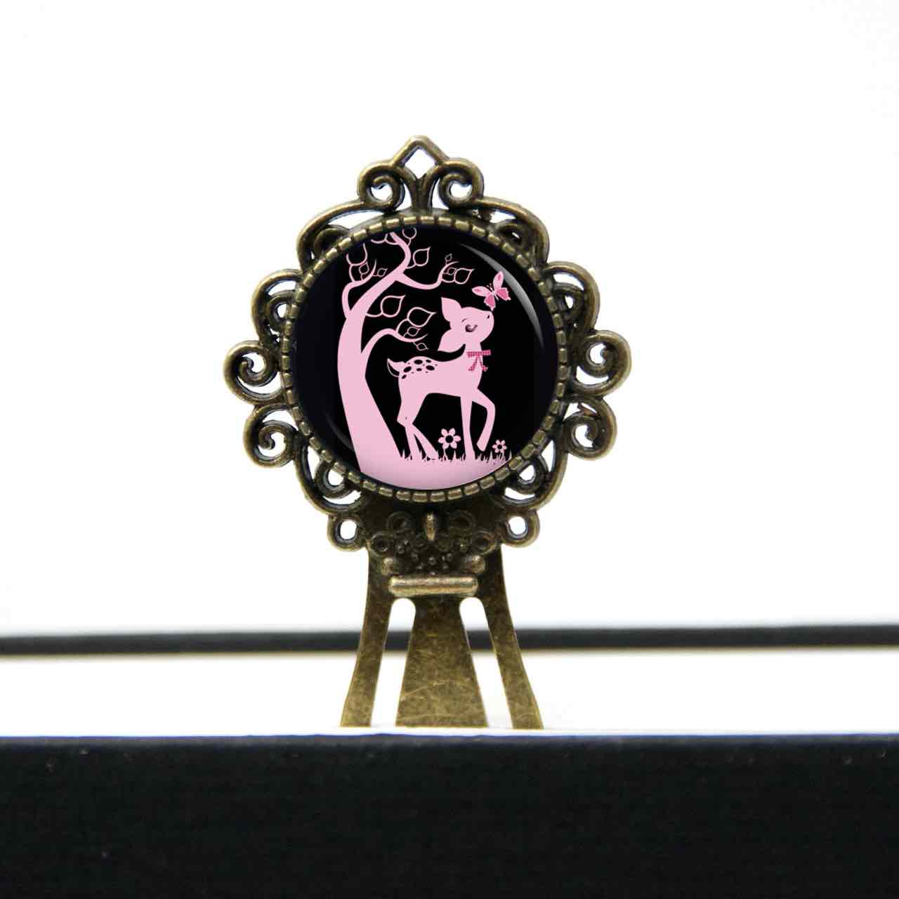 Lesezeichen Klammer Reh Rehkitz Bambi schwarz rosa