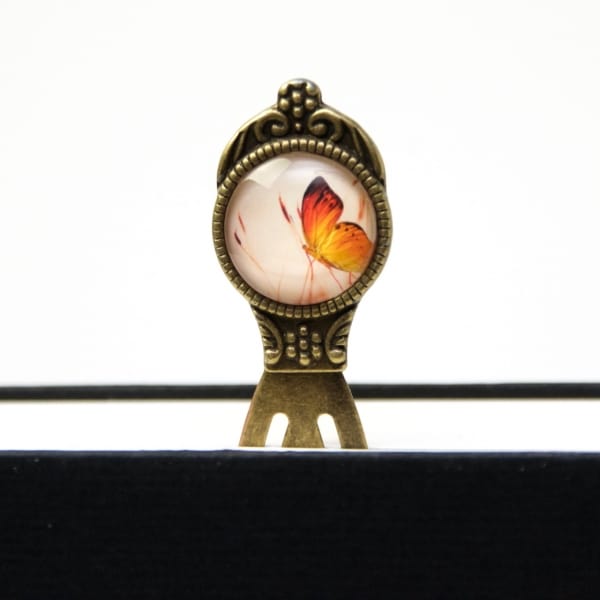 Tolle bronzene Lesezeichen Klammer mit einem romantischen Schmetterlings Motiv.