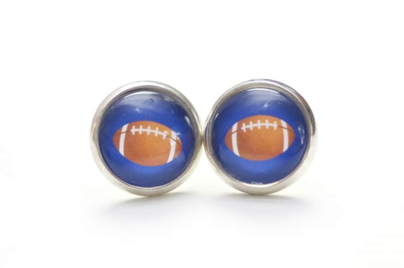 Druckknopf Ohrstecker Ohrhänger American Football Blau Super Bowl NFL