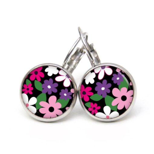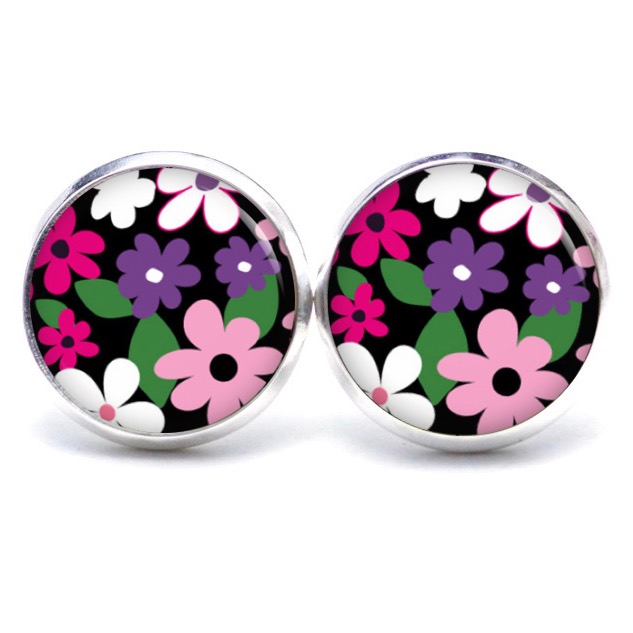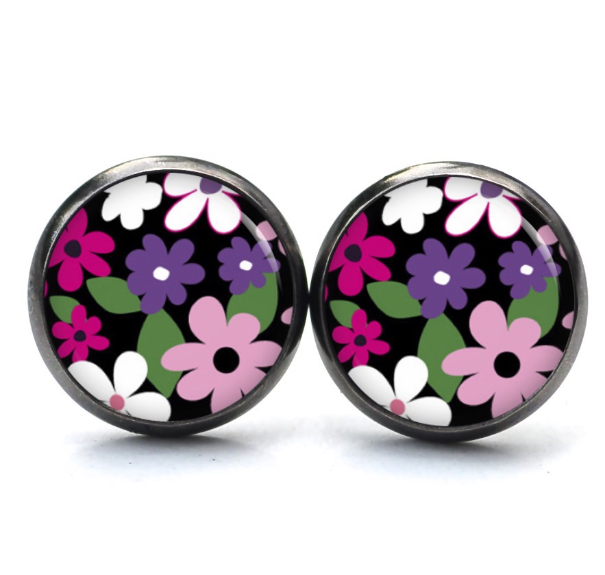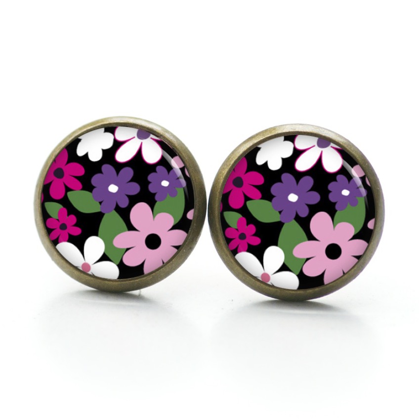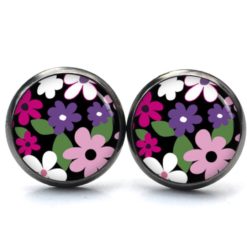 Druckknopf Ohrstecker Ohrhänger Frühlingshaftes Blumenmotiv rosa violett