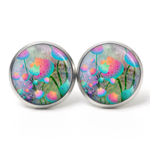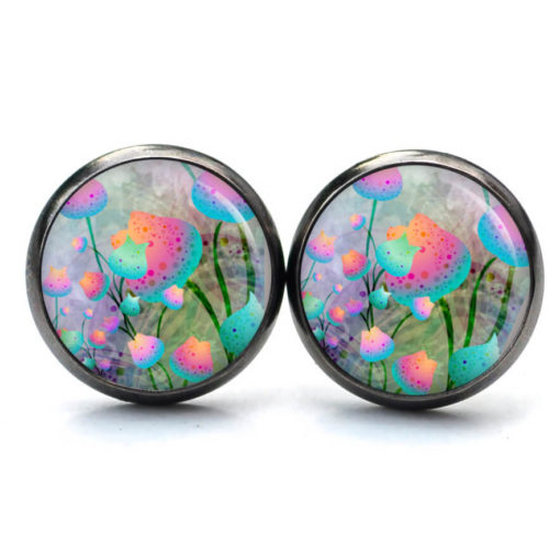 Druckknopf Ohrstecker Ohrhänger bunte Blumenwiese rosa türkis