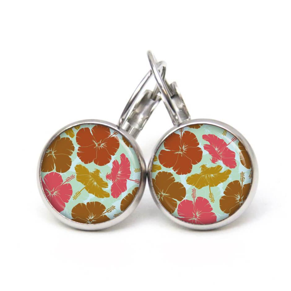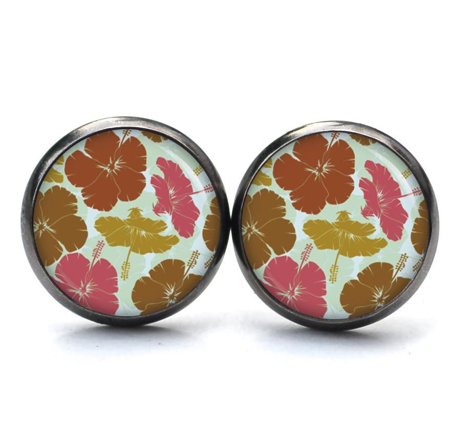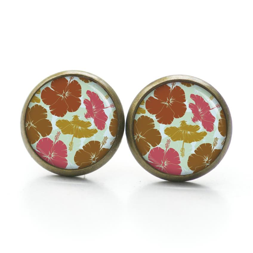 Druckknopf Ohrstecker Ohrhänger Clipse Herbstblätter Türkis